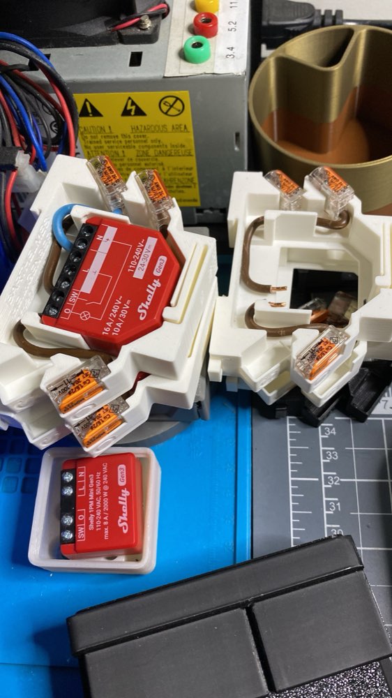 I got tired of cramming Shelly Plus 1PM modules inside power plugs. They barely fit, they’re a pain to service, and stuffing them in a sealed enclosure raises heat dissipation concerns — not ideal for something switching mains voltage.