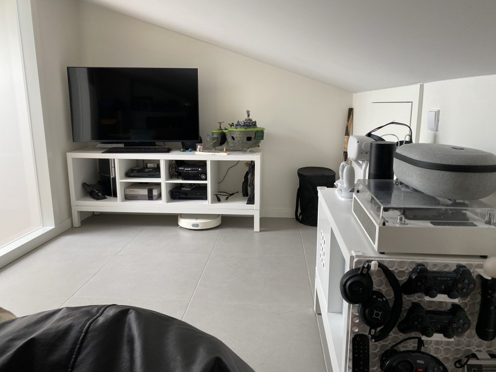 Near the gaming corner, a Kallax became the perfect place to hold the gaming controllers, tv remote and headsets, keeping everything visible and grab-ready.