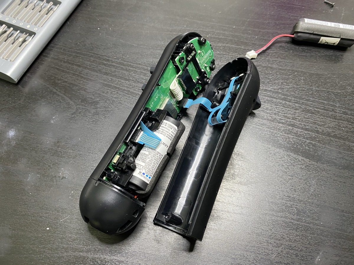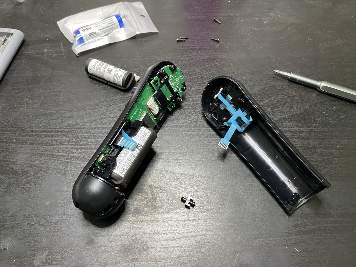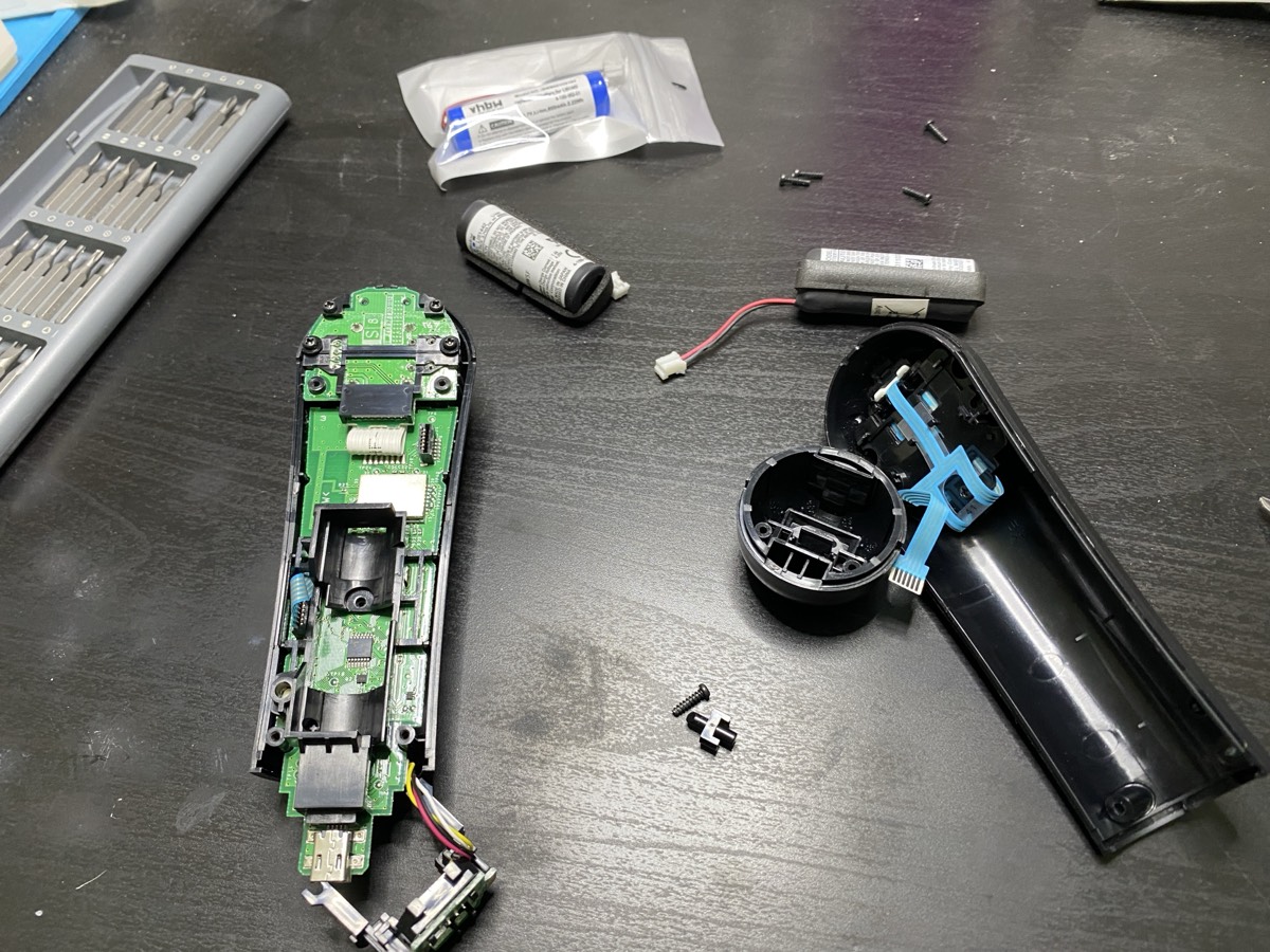 The controller opens with a single small Phillips screw at the bottom. The two halves clip apart, exposing the PCB and battery. Disconnect the old battery, swap in the new one, and reassemble. Assemble carefully β the cables and plastic fittings are not very strong.